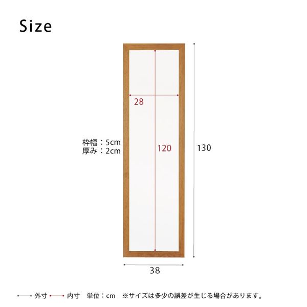 幅広枠ウォールミラー(38×130)(ハニーブラウン/茶) 天然木 姿見鏡 スリム 高級感 木製 飛散防止加工 壁掛け 北欧風 ヴィンテージ 韓国インテリア 玄関 トイレ 洗面 日本製 完成品 NK-35