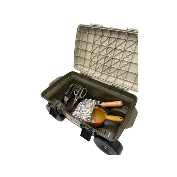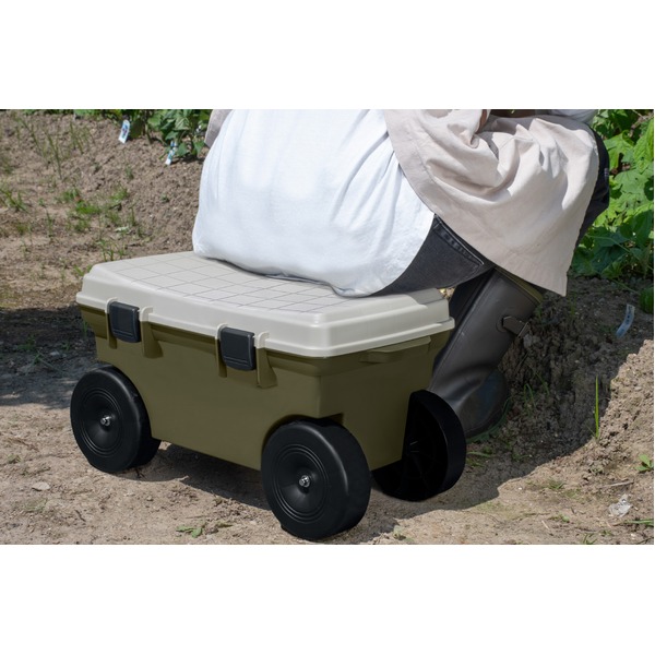座面下は小物入れに使え、鎌やハサミなどを収納できます。