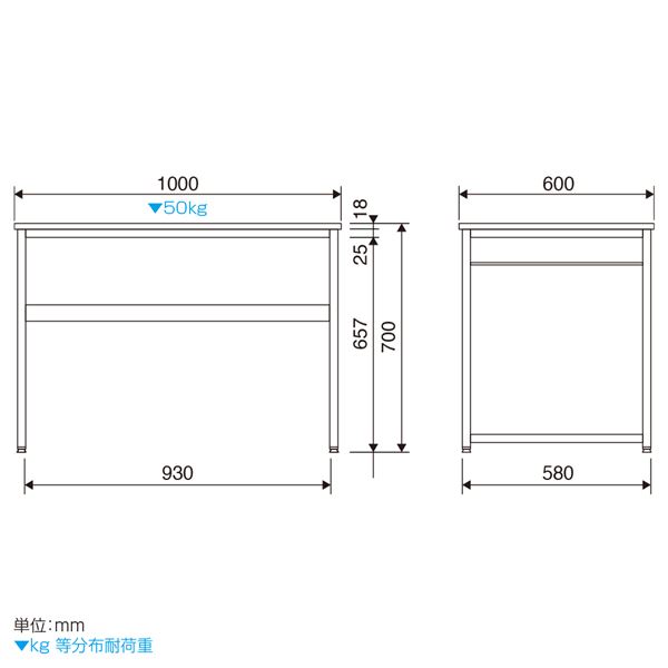 ■材質:天板/メラミン化粧板、脚フレーム/スチール 粉体塗装、アジャスター/ポリプロピレン
