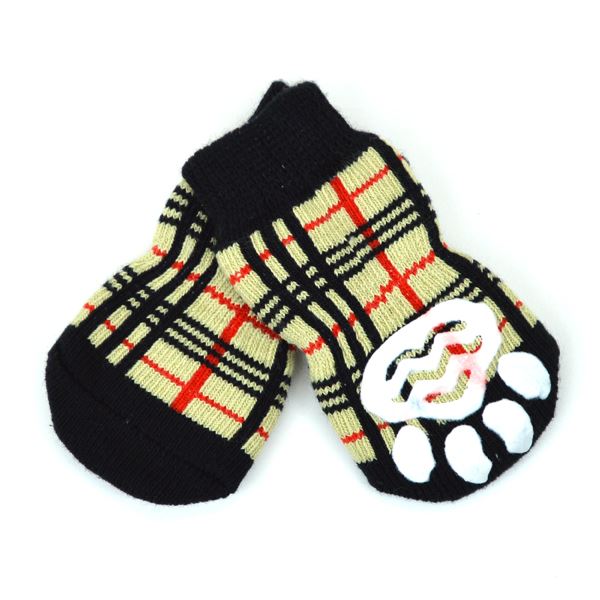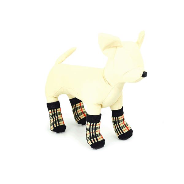(まとめ)L'ange ペットソックス4足セット check beige L 犬用靴下【×2セット】