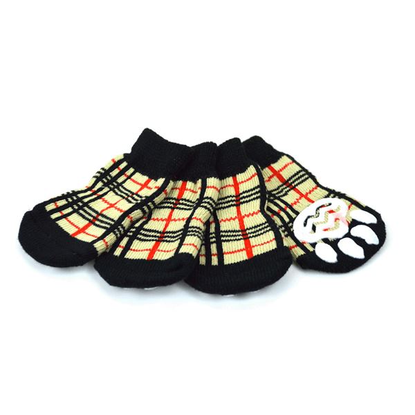 (まとめ)L'ange ペットソックス4足セット check beige XL 犬用靴下【×2セット】