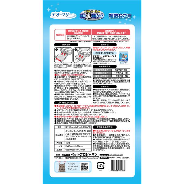 (まとめ)デオフリー 強力炭消臭シート 複数ねこ用 8+2枚入 【×2セット】