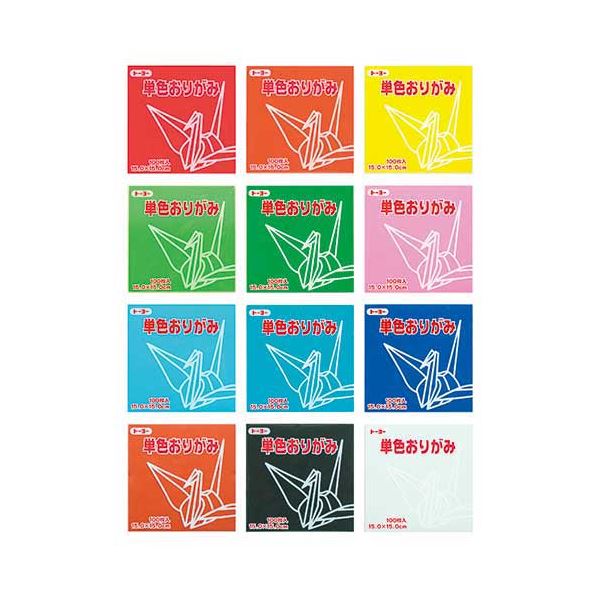 人気色を中心とした12色の単色おりがみ+収納ボックスのセット。
