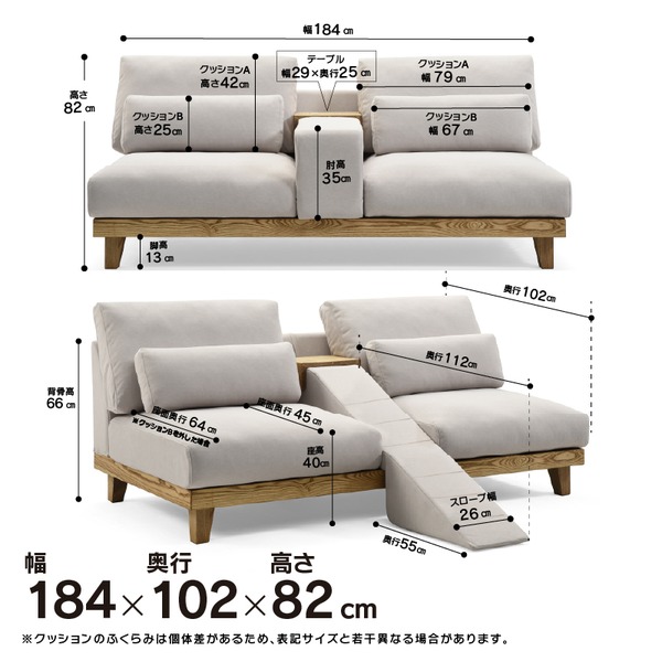 スロープを外して2Pソファ、左右どちらかに寄せてサイドテーブル付きソファとして使うこともできます。