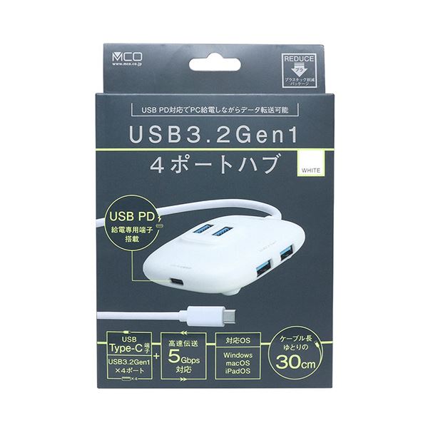 ナカバヤシ ミヨシUSB PD対応Type-C USB3.2Gen1ハブ 4ポート ホワイト UDS-HH01P/WH 1個