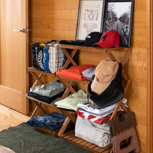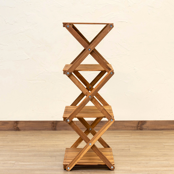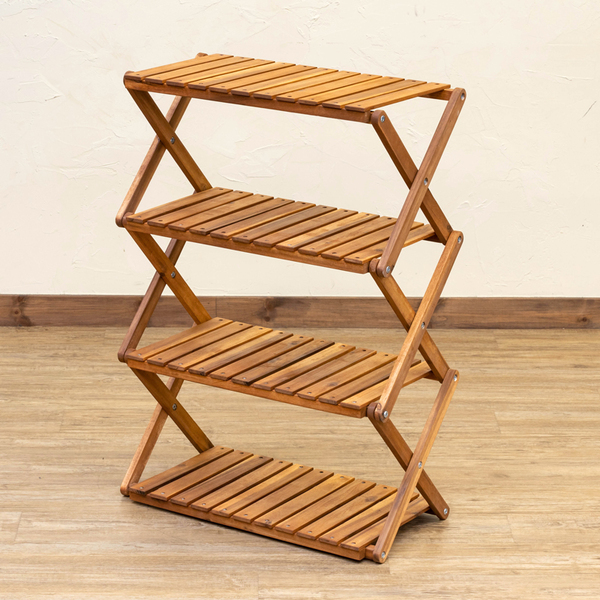アカシア 折り畳みラック 4段 ワイド ブラウン (BR) 【代引不可】