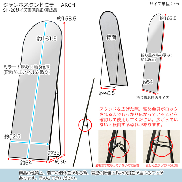 ジャンボスタンドミラー ブラック (BK) 【代引不可】