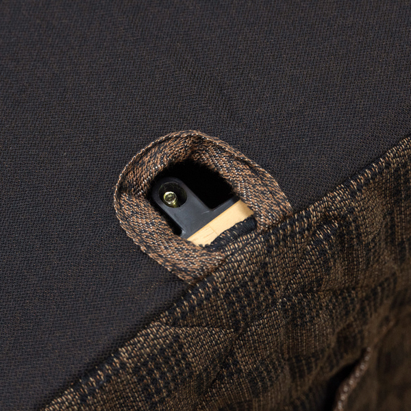 リモコン収納用のポケットが2か所あり、近くにはコード通し穴もあります