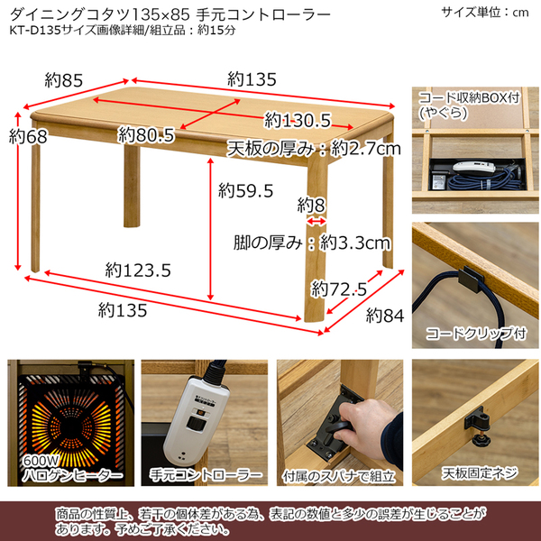 ダイニングコタツ 135×85cm 長方形 手元コントローラー ブラウン (BR) 組立品【代引不可】