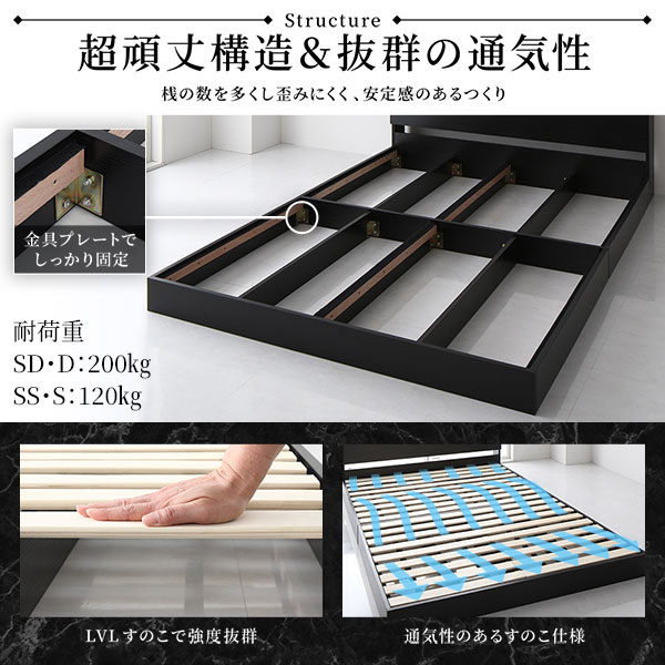 ※すのこは、セミシングル・シングルは2分割、セミダブル・ダブルは4分割