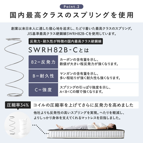 ポケットコイルを2層仕様にし、贅沢な寝心地を実現しました。
