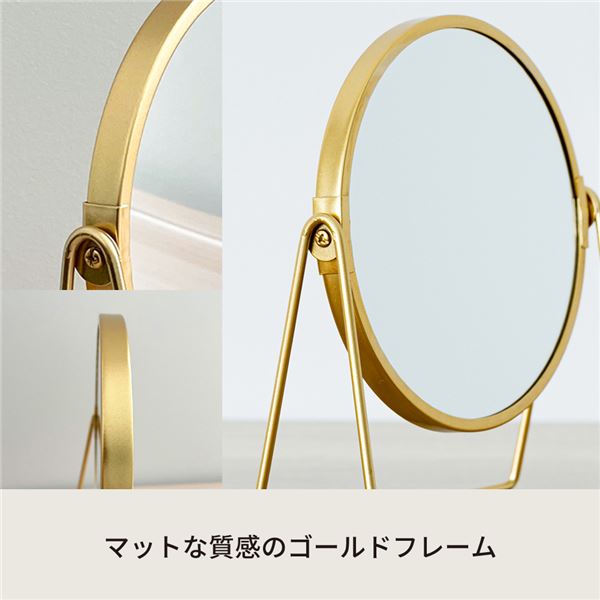 3倍鏡付卓上ミラーL LINO(ゴールド/金) メイク ヴィンテージ 置き型 ゴールド 真鍮風 拡大鏡 韓国インテリア NK-253