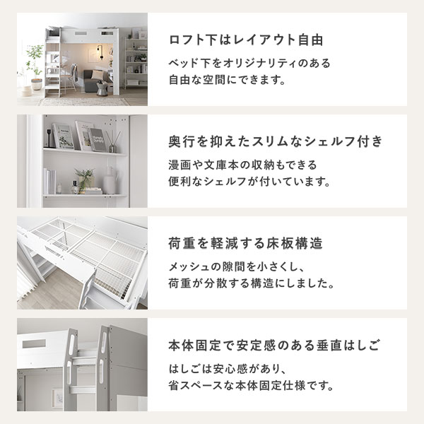 システムロフトベッド シングル 三つ折りポケットコイルマットレス付き ホワイト 組立品