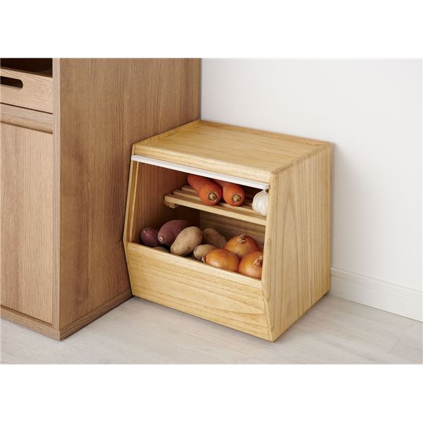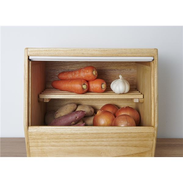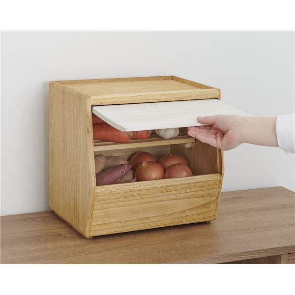 片手で簡単に開閉できるフラップ式扉採用。取り外しできるすのこ棚がついているので人参や玉ねぎ、ジャガイモ、サツマイモ、くだものなどをまとめて収納できます。