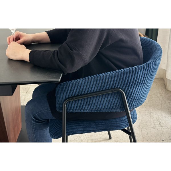 ベロア素材の生地にコーデュロイ調の縦ラインがおしゃれなチェア。身体を包み込むようなフォルムに、肌触りの良い生地感が贅沢な座り心地を体感できます。ダイニングにはもちろん、一つでも映えるアイテムなので、お部屋のアクセントにも使えます。ドレッサーやデスクにもぴったりです。