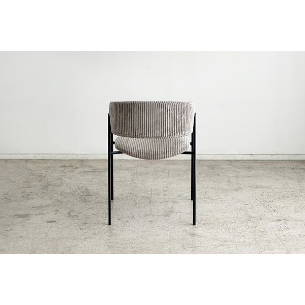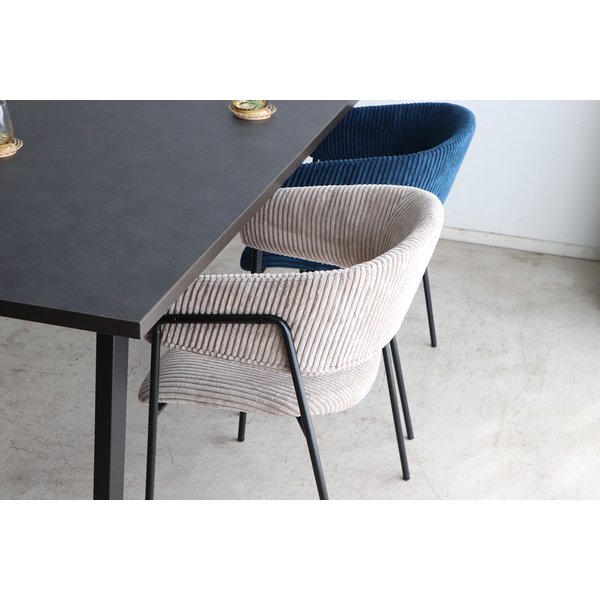 ベロア素材の生地にコーデュロイ調の縦ラインがおしゃれなチェア。身体を包み込むようなフォルムに、肌触りの良い生地感が贅沢な座り心地を体感できます。ダイニングにはもちろん、一つでも映えるアイテムなので、お部屋のアクセントにも使えます。ドレッサーやデスクにもぴったりです。