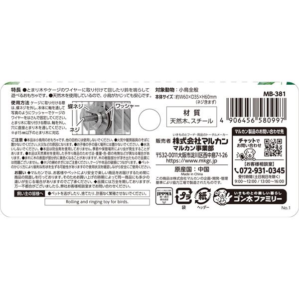 ・とまり木やケージに取り付けて、回しながら鈴を鳴らして遊ぶおもちゃです。