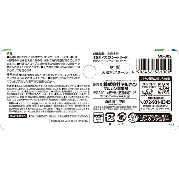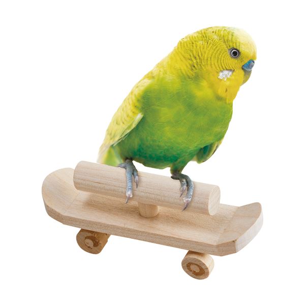 ・小鳥が乗りやすいとまり木が付いたスケートボードです。
