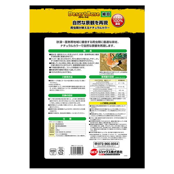 砂漠〜亜熱帯地域に棲息する爬虫類に最適な床材です。ナチュラルカラーで自然な景観を再現します。