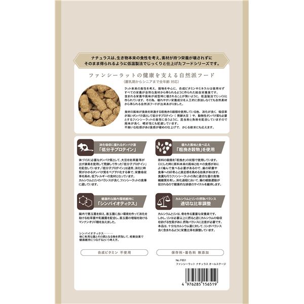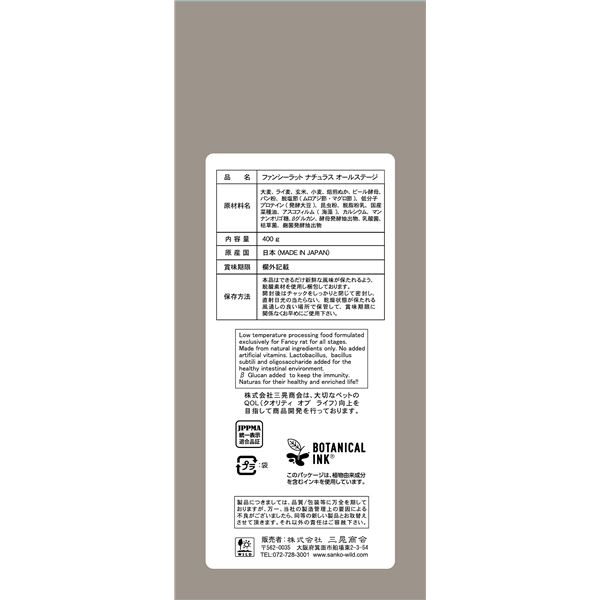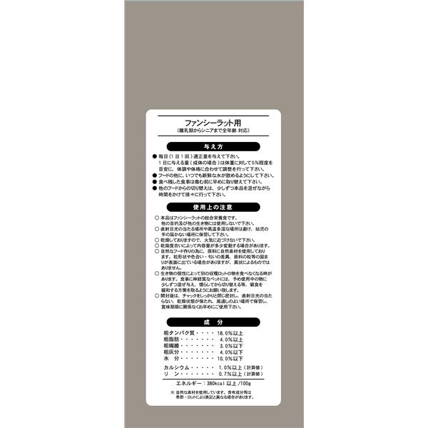 ・ファンシーラット本来の食性を考え、素材が持つ栄養をそのまま得られるようこだわり、低温製法で仕上げたフードです。