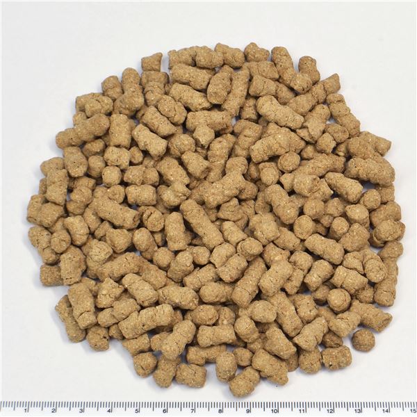 大麦、ライ麦、玄米、小麦、焙煎ぬか、ビール酵母、パン粉、脱塩節(ムロアジ節、マグロ節)、低分子プロテイン(発酵大豆)、昆虫粉、脱脂粉乳、国産菜種油、アスコフィルム(海藻)、カルシウム、マンナンオリゴ糖、βグルカン、酵母発酵抽出物、乳酸菌、枯草菌、麹菌発酵抽出物