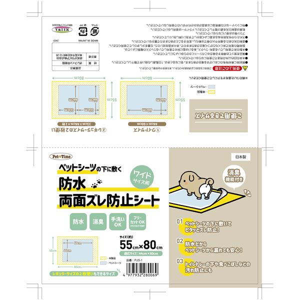(まとめ) ペットシーツ用防水両面ズレ防止PJS-1 55×80cm 【×2セット】