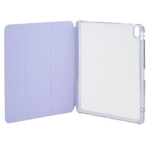 ●クッション性のあるTPU製のバンパーが衝撃を吸収します。内側は起毛素材で液晶画面を保護。背面パネルは艶消しクリア。Apple Pencilホルダーを収納した状態でiPad本体とペアリング、充電が可能。