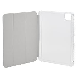 ●クッション性のあるTPU製のバンパーが衝撃を吸収します。内側は起毛素材で液晶画面を保護。背面パネルは艶消しクリア。Apple Pencilホルダーを収納した状態でiPad本体とペアリング、充電が可能。