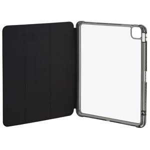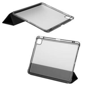 ●クッション性のあるTPU製のバンパーが衝撃を吸収します。内側は起毛素材で液晶画面を保護。背面パネルは艶消しクリア。Apple Pencilホルダーを収納した状態でiPad本体とペアリング、充電が可能。