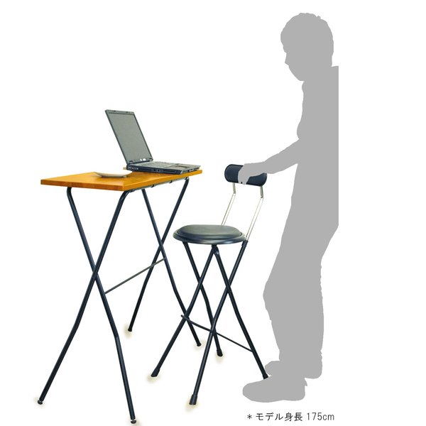 天板高さ1メートル程度のハイカウンターテーブルにマッチするシート高さ71cmのフォールディングチェア。