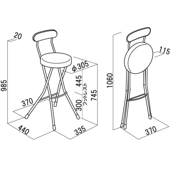 天板高さ1m程度のハイカウンターテーブルにマッチするシート高さ74cmのフォールディングチェア。
