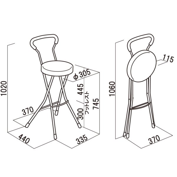 ■サイズ:W370×D440×H1020×SH745