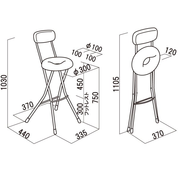 天板高さ1m程度のハイカウンターテーブルにマッチするシート高さ75cmのフォールディングチェア。