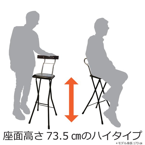天板高さ1m程度のハイカウンターテーブルにマッチするシート高さ75cmのフォールディングチェア。