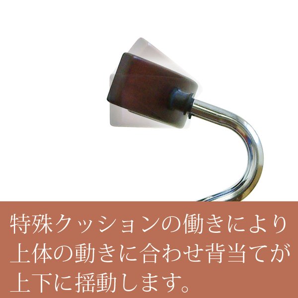 弧を描く天然木の背当てと光沢のあるリザードスキン張地のクッションが特徴的。背当ての基部に特殊ゴムを配し、上体の動きに合わせ背当てが上下に揺動します。