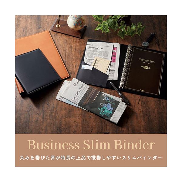 丸味を帯びた背が特徴の上品で高級感のある携帯しやすいスリムバインダー。