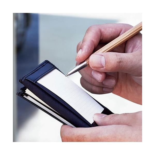 とっさのメモに活躍する便利なメモホルダー付きです。革製名刺整理に便利な2層式。