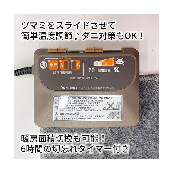 ・3畳相当(235×195cm) / 簡単温度調節 / ダニ対策OK / 暖房面積切替可能 / 6時間の切り忘れタイマー付き / 50℃まで調整可能 / ポリエステル100%素材