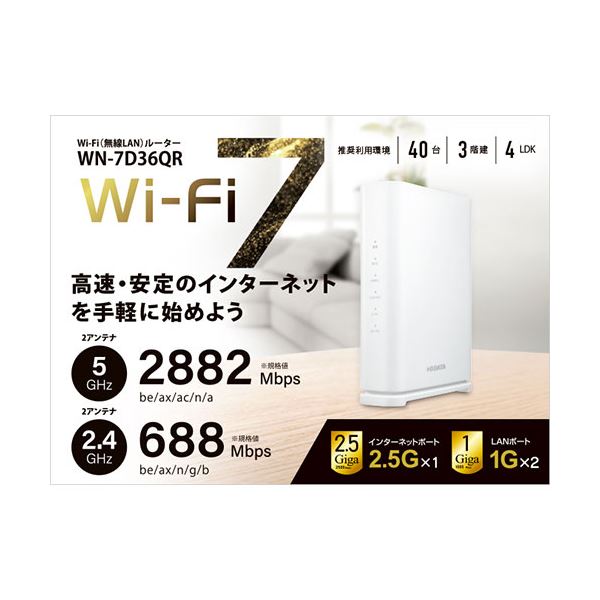 IOデータ 2.5Gbps対応 Wi-Fi 7デュアルバンドルーター WN-7D36QR
