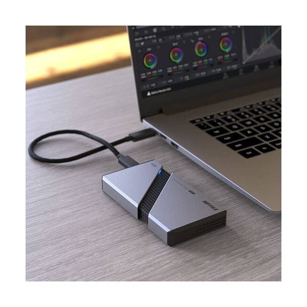 SSDとUSB4(Gen 3x2)対応により、「読み込み : 約3,800MB/s以上」「書き込み : 約3,700MB/s以上(2TBモデル)、約3,600MB/s以上(1TBモデル)」の高速なデータ転送を実現。