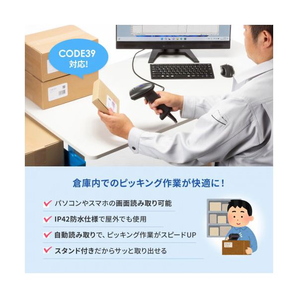 ●物流向けで使用するCODE39など様々なバーコードの読取りが可能です。