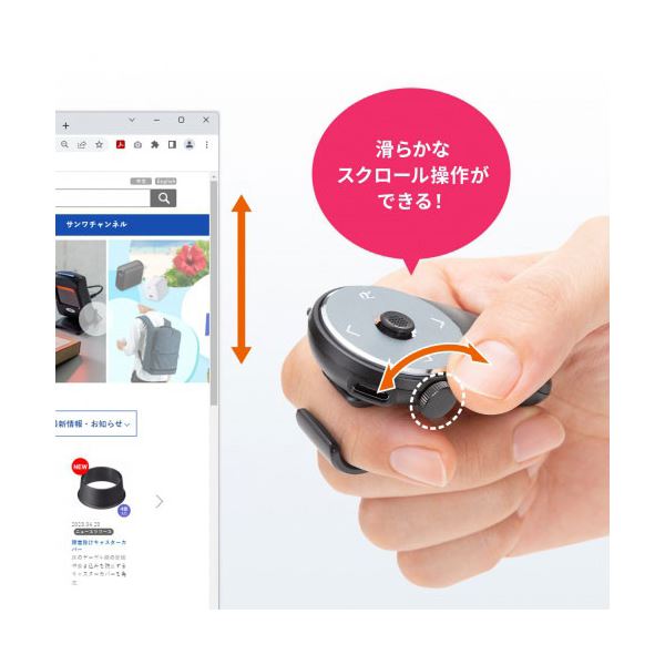 ●指に装着して親指で操作できるBluetoothリングマウスです。
