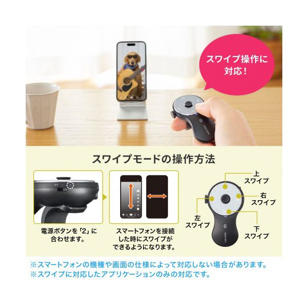 ●スワイプモード搭載で従来マウスでできなかったスマホのスワイプに対応できます。