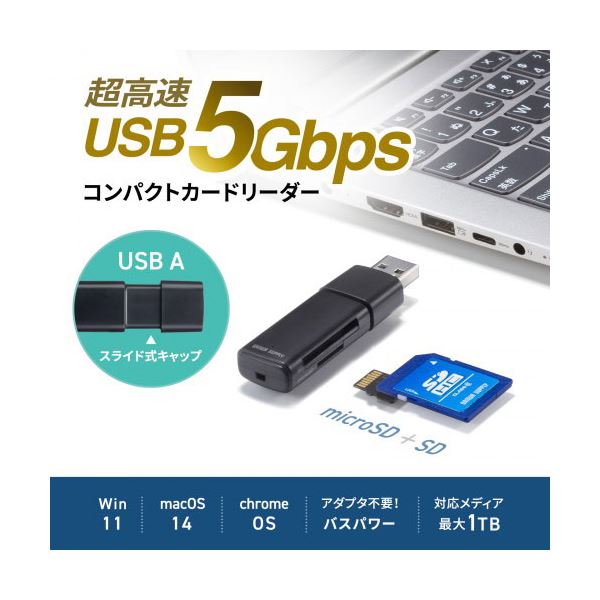 サンワサプライ USB 5Gbps カードリーダー ADR-5MSD1BK
