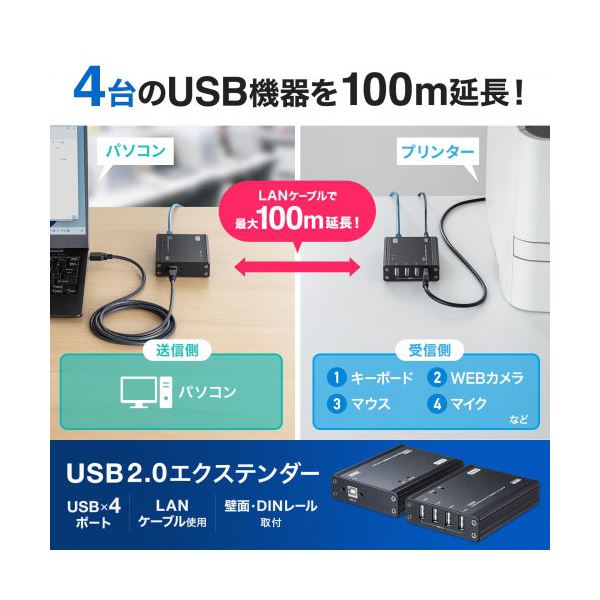 サンワサプライ USB2.0エクステンダー 100m延長 4ポート USB-EXSET4