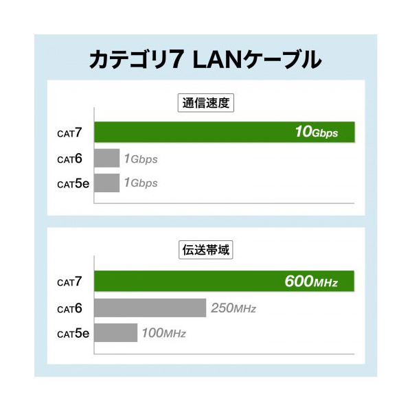 ●伝送速度10Gbps、伝送帯域600MHzを実現した、10ギガビット対応LANケーブルです。