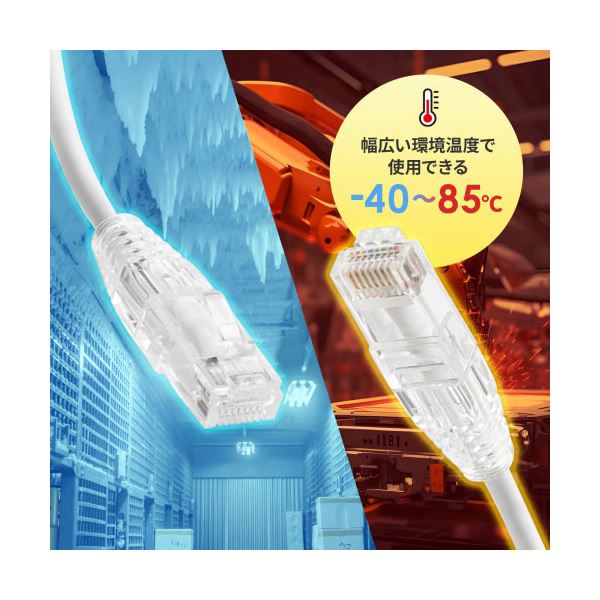 ●耐温度性能、耐油性能、対UV性能に優れた材質のLANケーブルです。