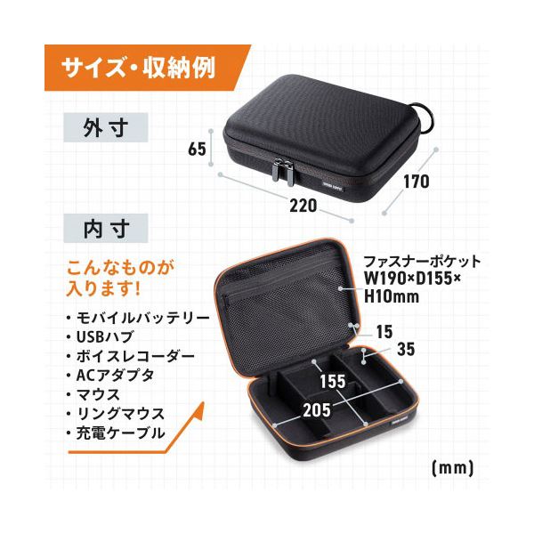 サンワサプライ セミハードガジェットケース W220×D170×H65mm IN-HDAD4BK
