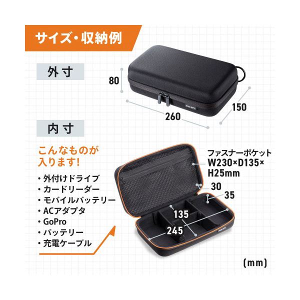 サンワサプライ セミハードガジェットケース W260×D150×H80mm IN-HDAD5BK