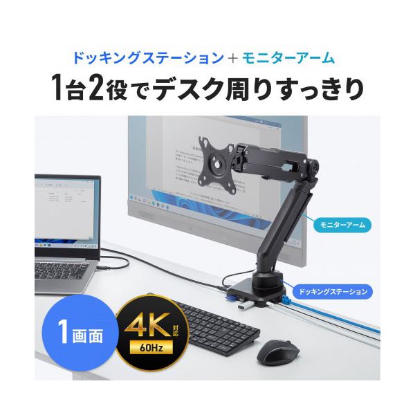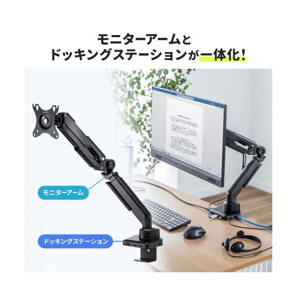 サンワサプライ ドッキングステーション搭載モニターアーム シングルアーム ガススプリング式 CR-LACDK1402BK